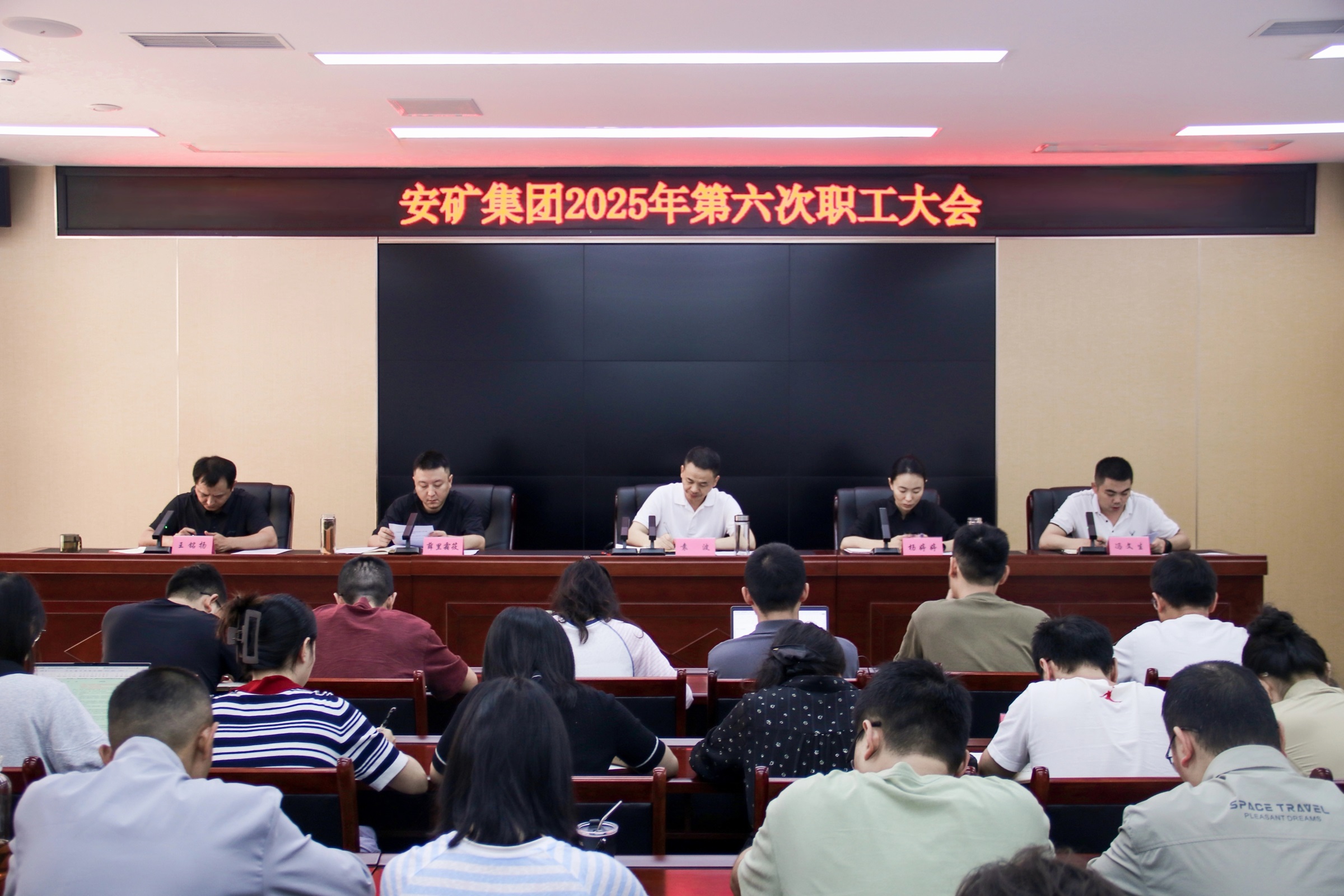 9月5日,安礦集團召開2025年第六次職工大會,集中傳達學習習近平總書記關于防汛救災工作的重要指示精神,以及省委十二屆七次全會、市委八屆十次全會、區(qū)委三屆九次全會精神。黨支部書記、董事長袁波出席會議并講話,黨支部委員、總經(jīng)理、工會主席楊婷婷主持會議。